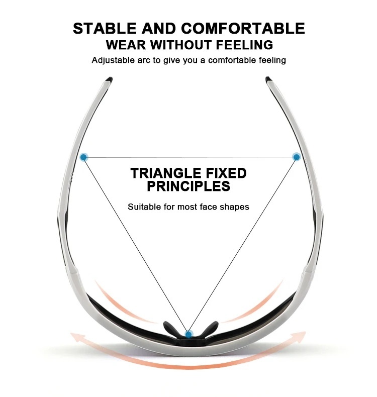 Whether you’re conquering challenging terrains or cruising through the city streets, our eyewear is the epitome of versatility. The lightweight frame provides comfort during extended rides, while the anti-slip nose pads and temple grips ensure a secure fit, allowing you to focus on the journey ahead.