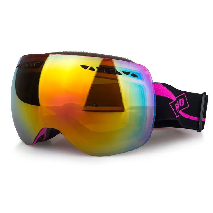Large spherical double lens ski goggles has so much characteristic: The large spherical 6C-shaped body design is more comfortable to face. Because of its wide field of vision and high camber, it is more suitable for snowboarding. Large spherical double lens ski goggle’s lens are embedded with magnets for inhalation, and N45 strong magnetic materials are used for dropping. Slot-type side buckle device, which is convenient for replacing various patterns of strap. The design of lens vent hole is beneficial to heat dissipation and anti-fog. The nose heightening sponge is designed to prevent the air from entering the nose bridge. Three-layer high-density sponge, comfortable to absorb sweat. Anti-slip replaceable bidirectional adjustable strap.
