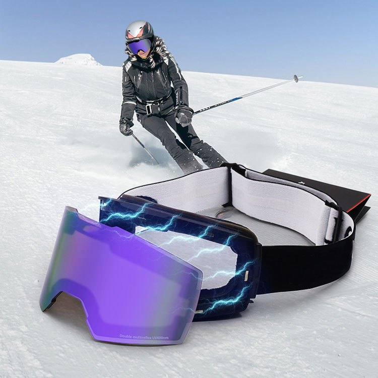 Outdoor anti-fog Uv400 polarized magnetic ski goggles is made by high quality PC material, which has excellent Optical Clarity PC Lens with UV400. Outdoor anti-fog Uv400 polarized ski goggles prevents the harmful light and glare with high transparency, which block out the harmful ultraviolet light, windproof and dustproof. Thirple layers facial sponge pad, soft and comfortable, the flexible High-quality material secure it more safety. The soft high elasticity sponge offers you great comfort for your riding journey. It fit the face with high sweat absorption and excellent breathability.